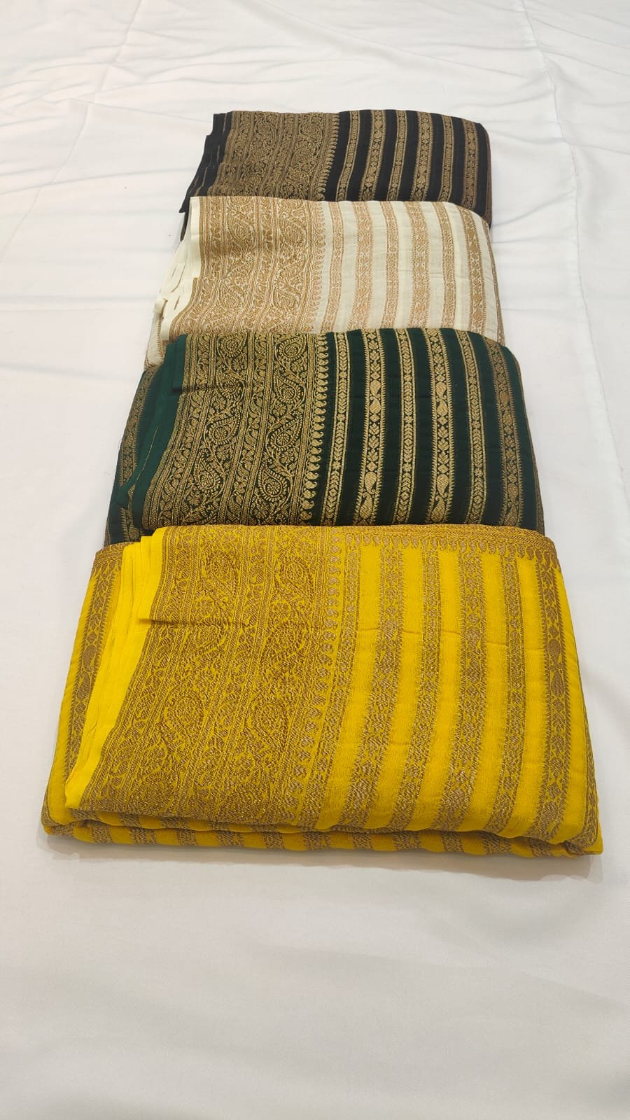 From the grandeur of Pure Kanchipuram and Mysore Silk to the delicate charm of Georgette and Organza, our collection is thoughtfully curated to cater to every occasion—whether it’s a wedding, a festival, or a casual day out. Each saree in our store tells a story of skilled craftsmanship, intricate designs, and unmatched elegance.